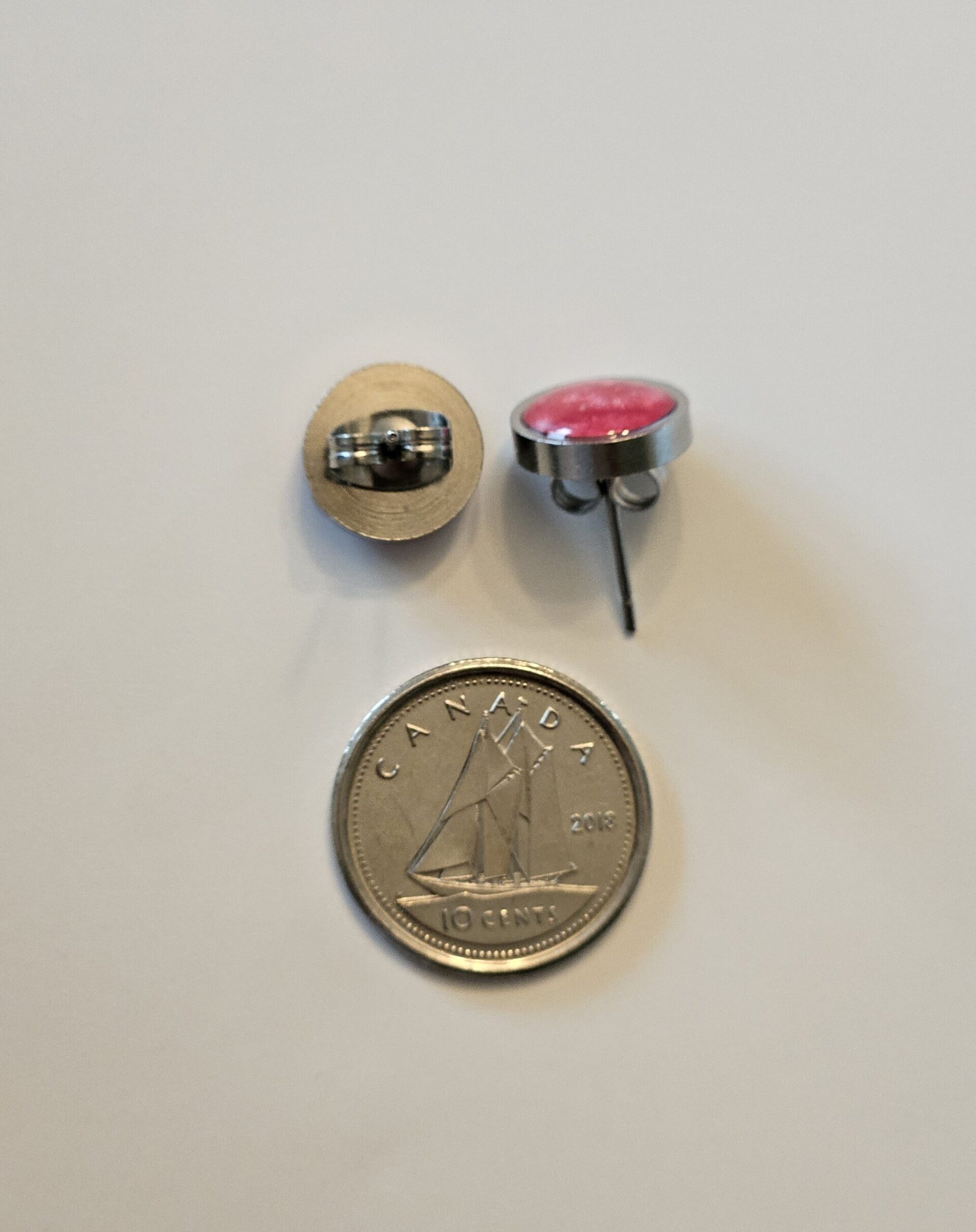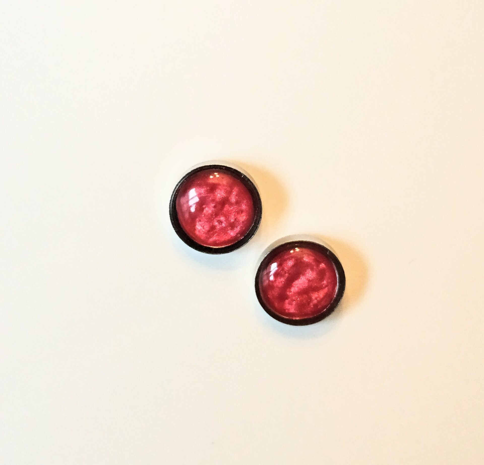 Boucles d’oreilles sur tiges, en acier inoxydable hypoalergénique, peintes à la main avec vernis et résine epoxy.