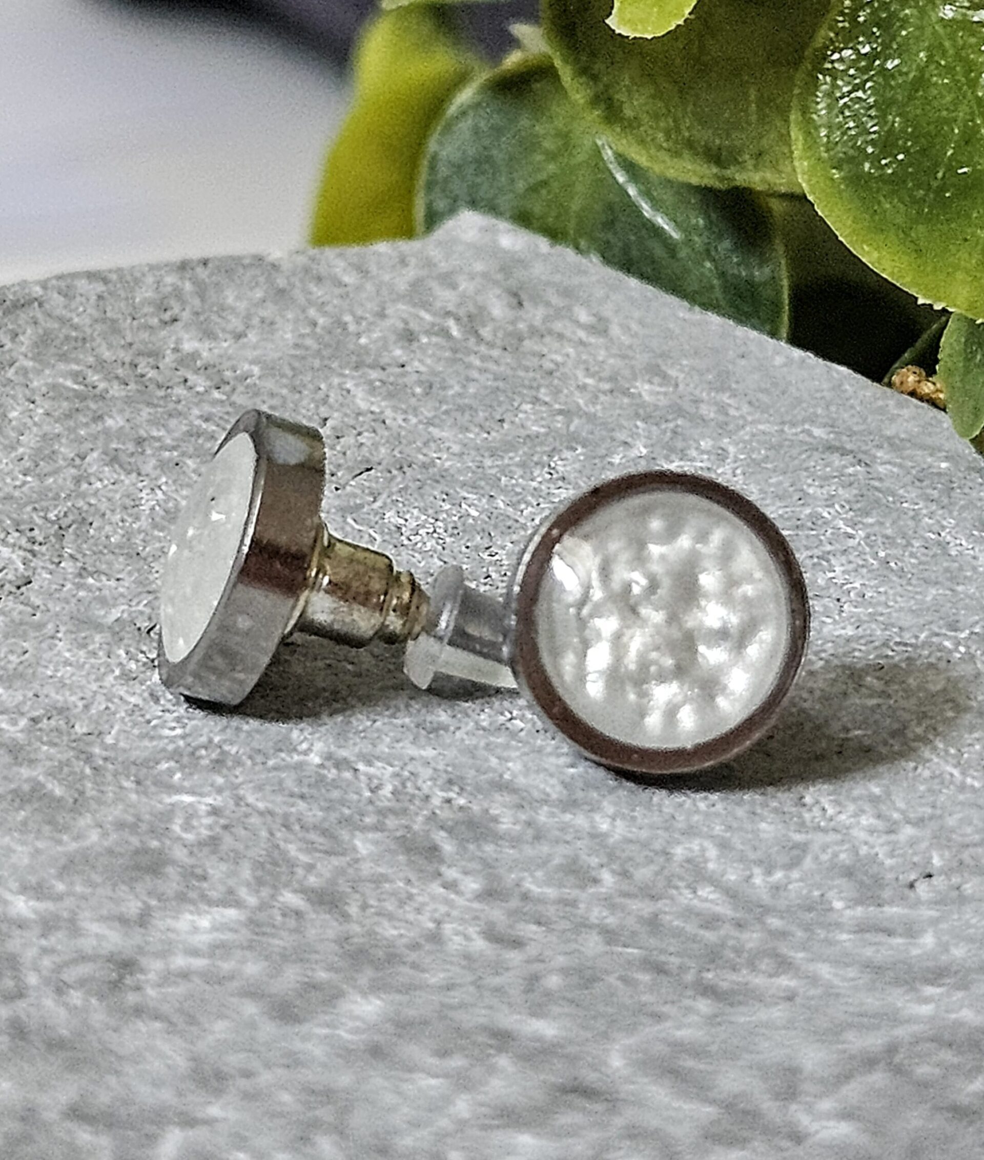 Boucles d’oreilles sur tiges, en acier inoxydable hypoalergénique, peintes à la main avec vernis et résine epoxy.