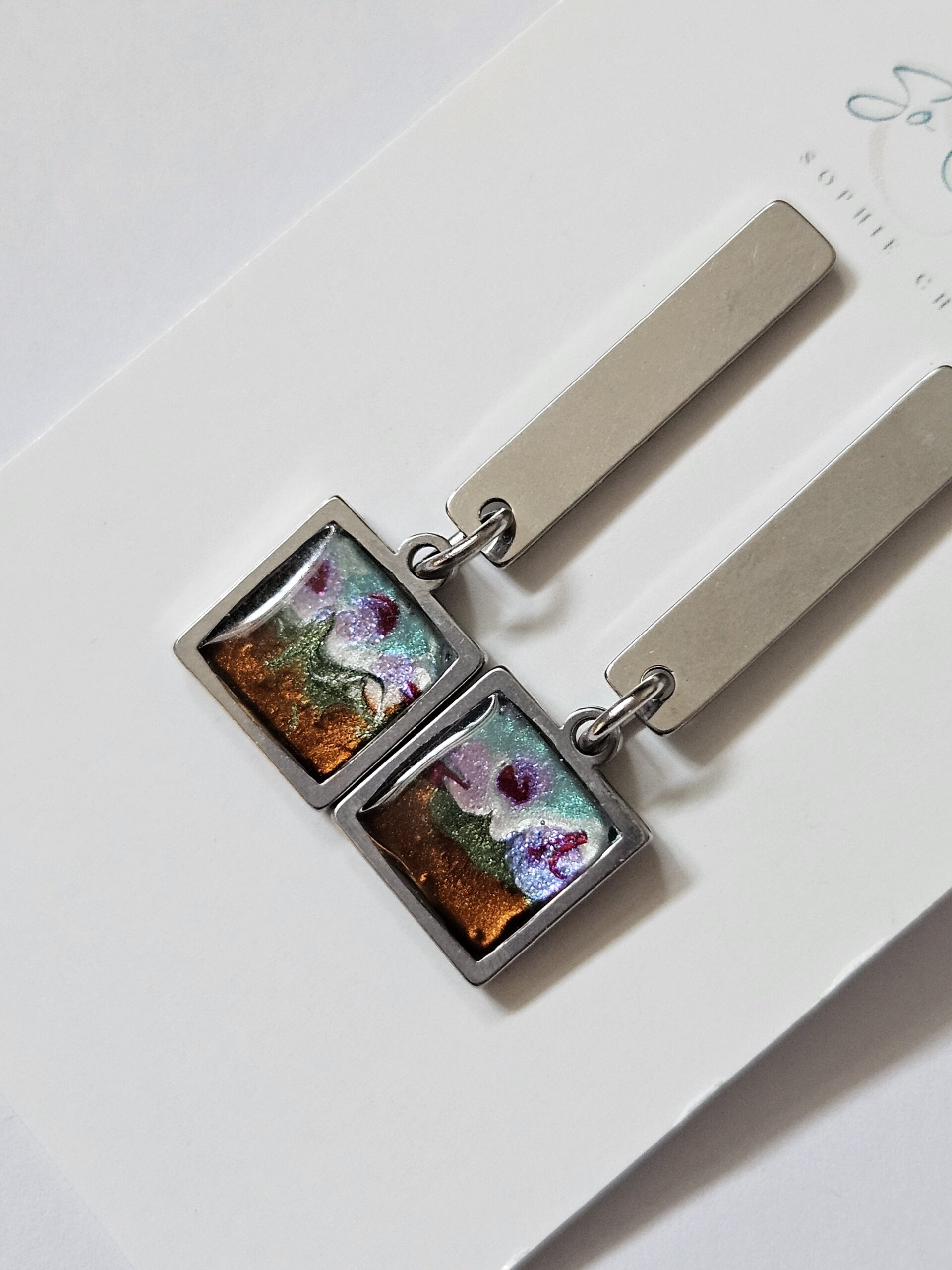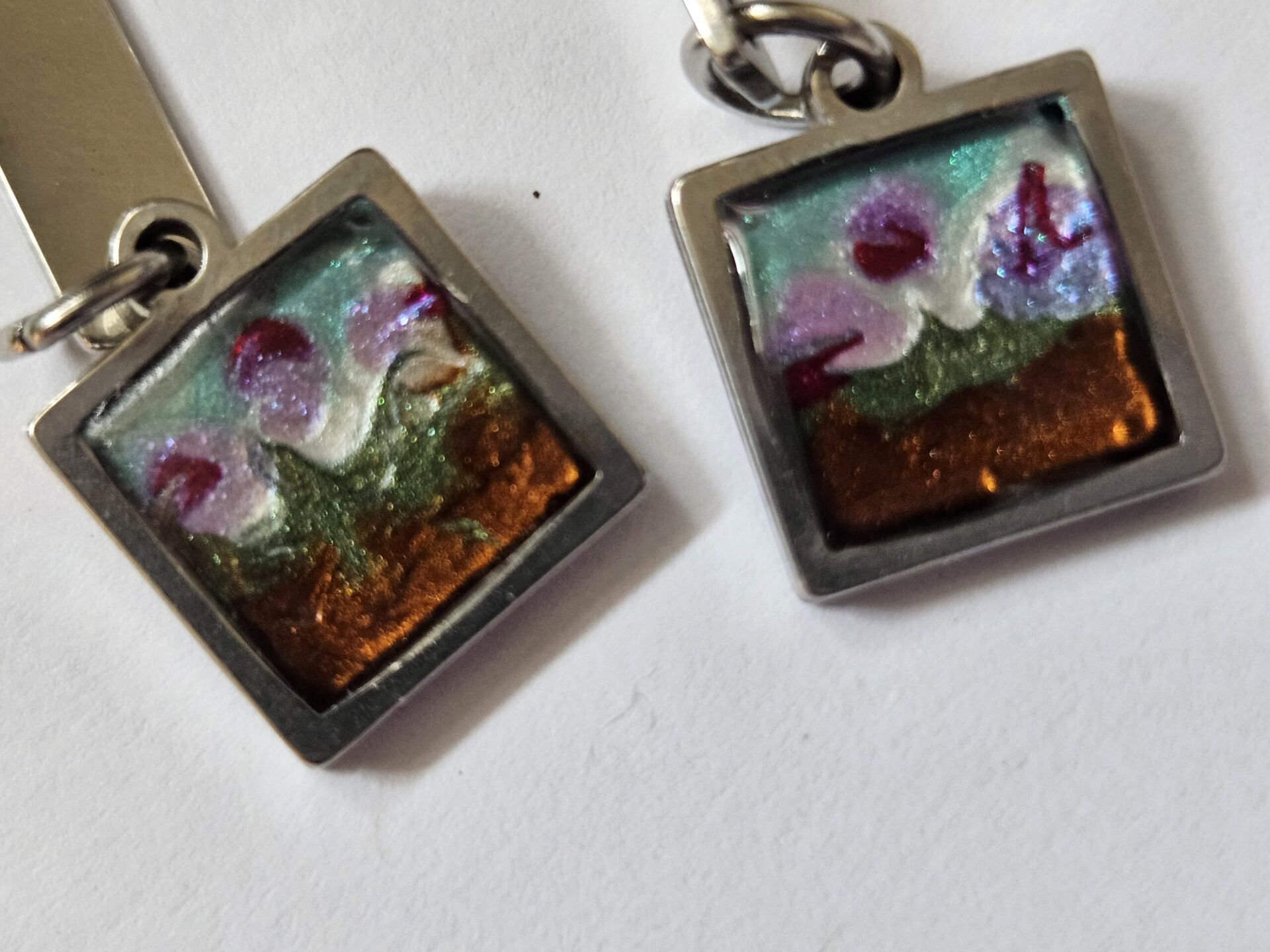 Boucles d’oreilles en acier inoydable peintes à la main.