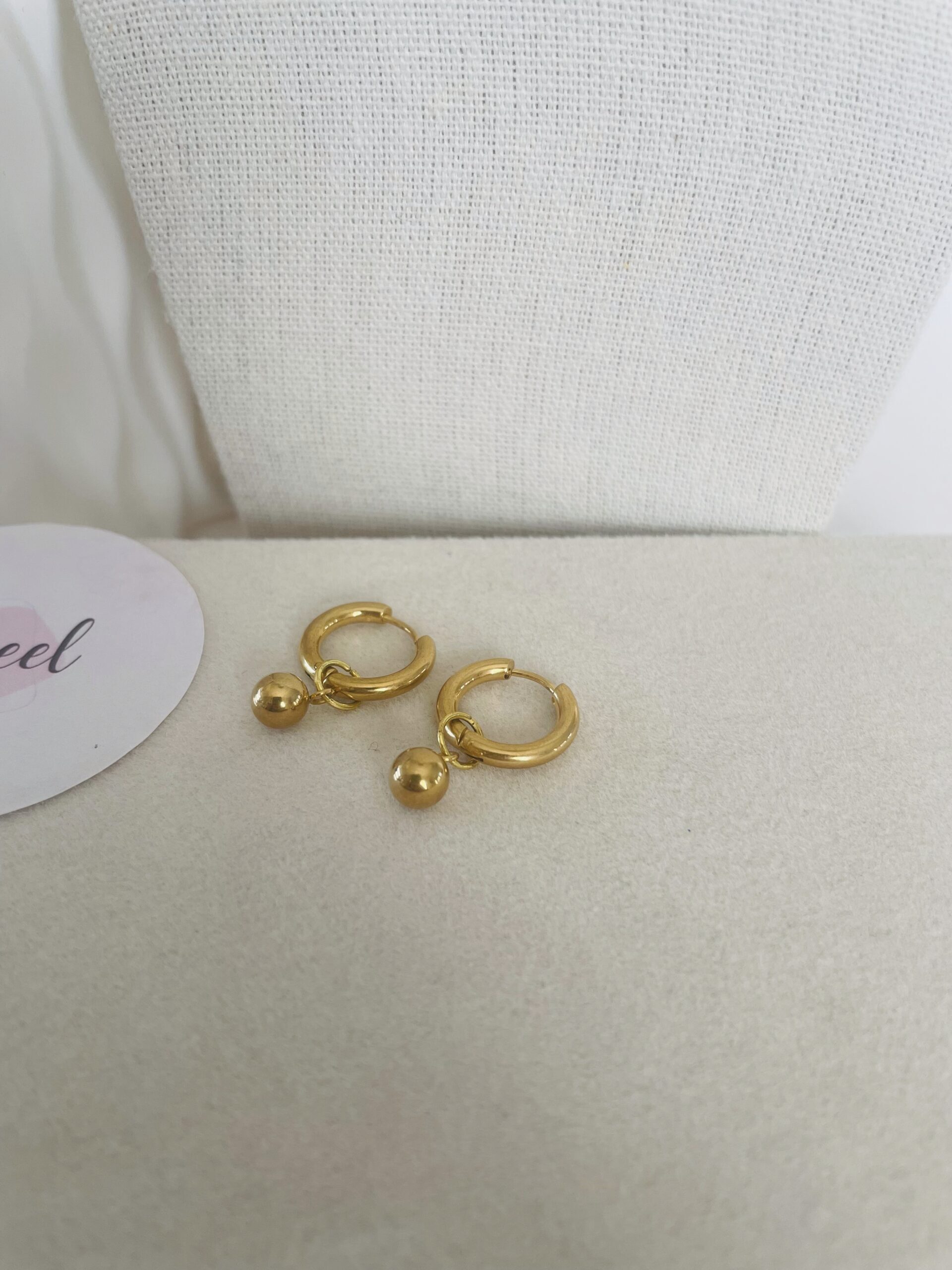 Boucles d’oreilles et charm boule doré en acier inoxydable