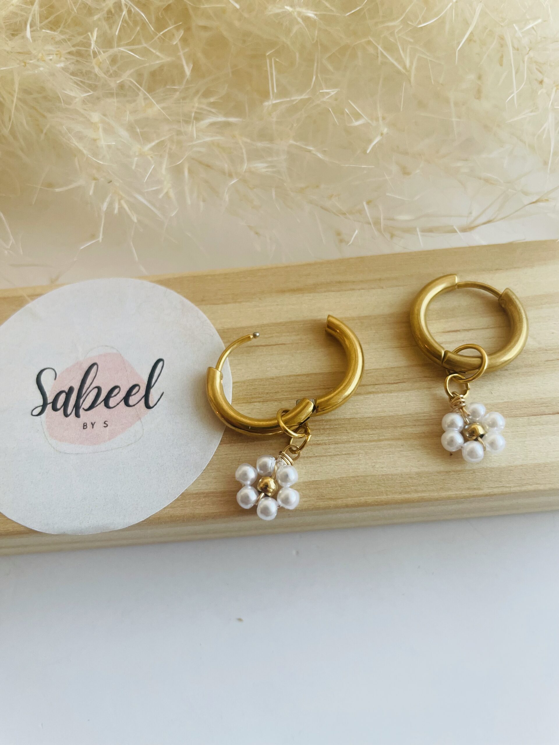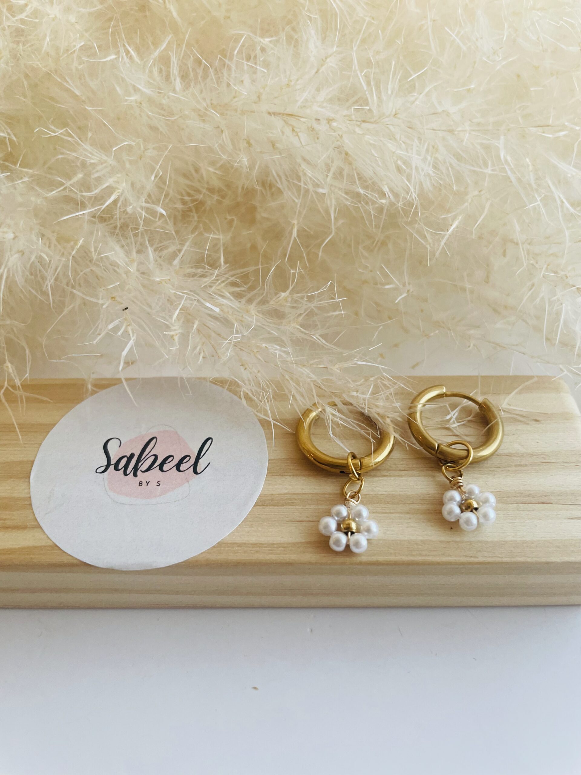 Boucles d’oreilles en acier inoxydable avec charm marguerite en résine et alliage