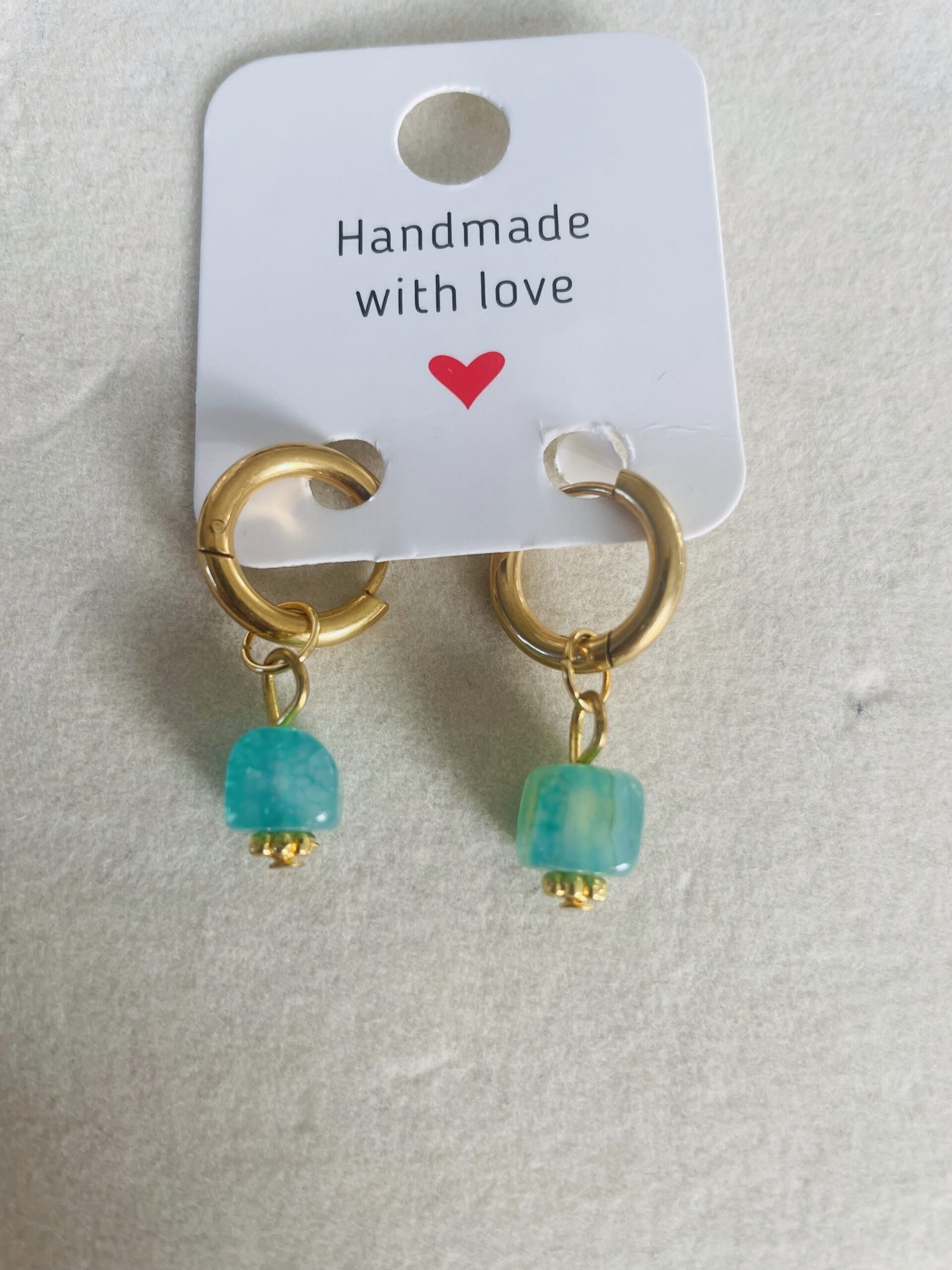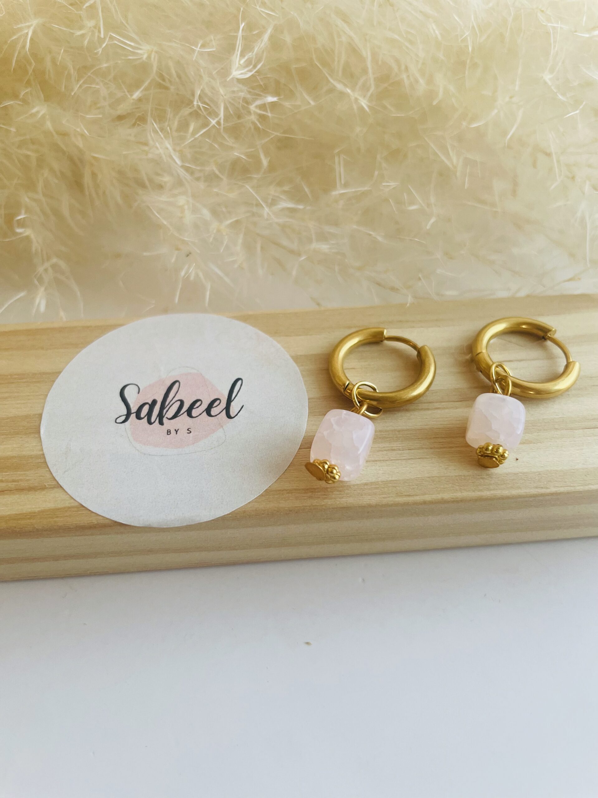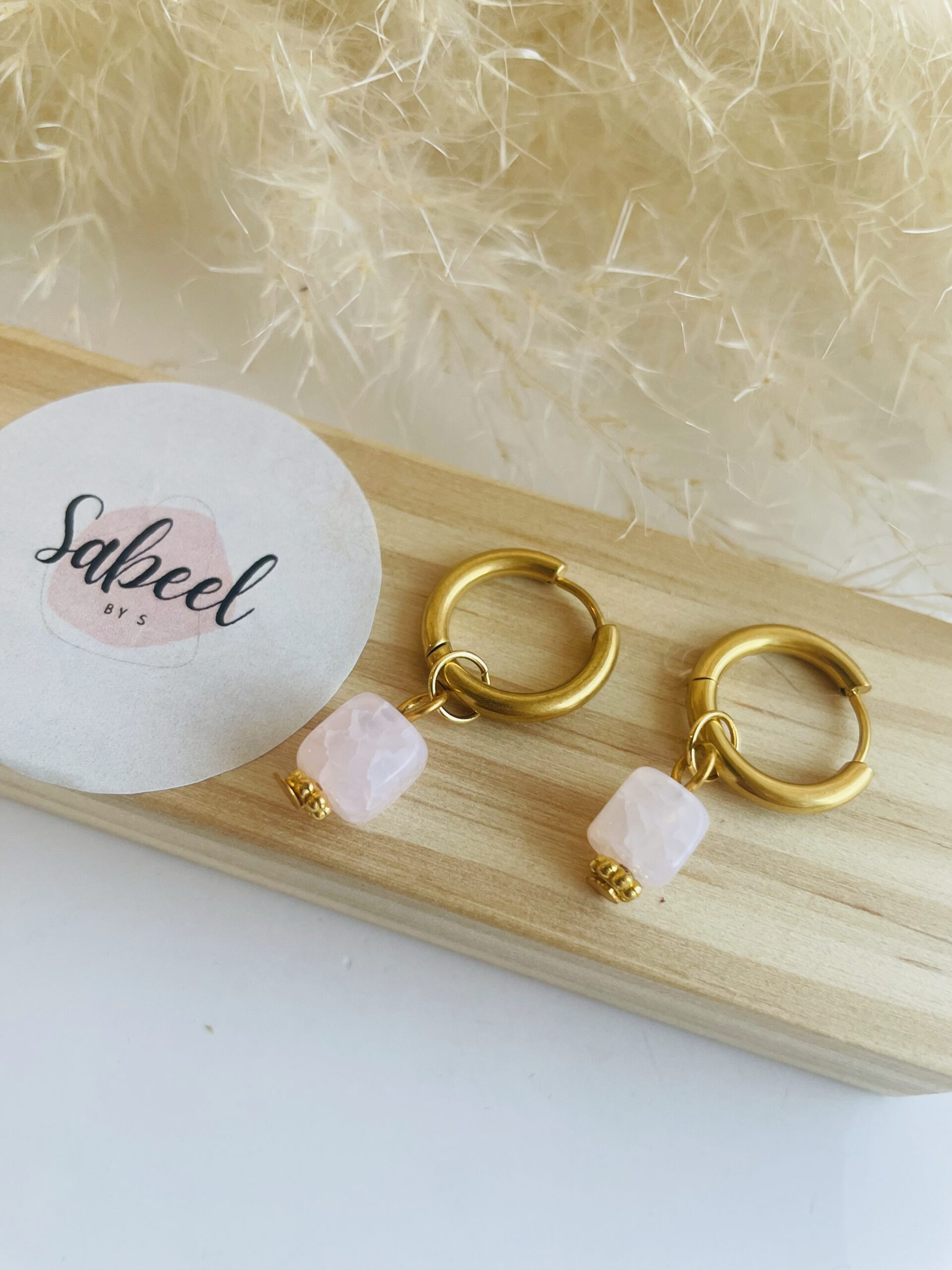 Boucles d’oreilles en acier inoxydable et charm en pierre naturelle carrée rose