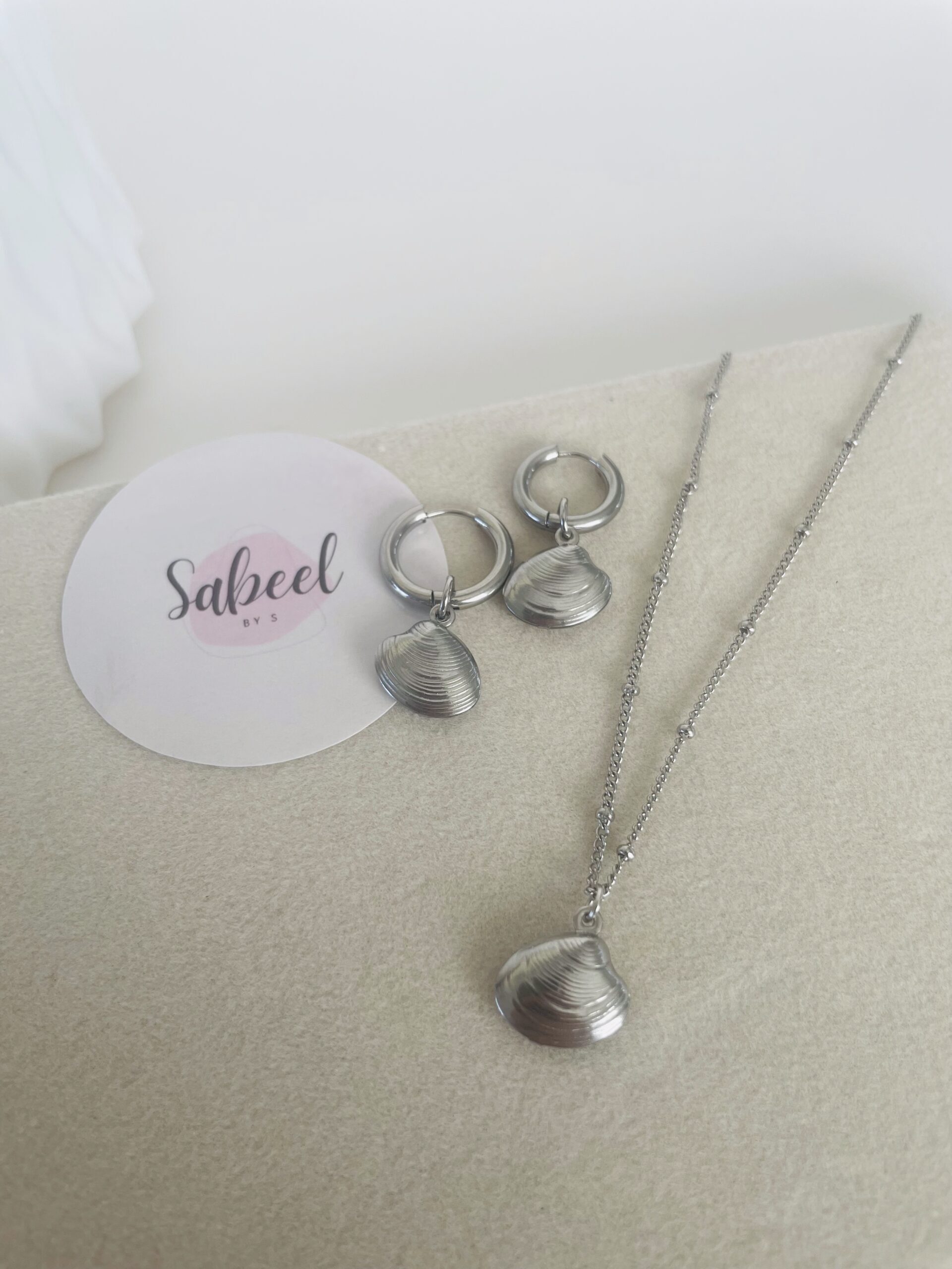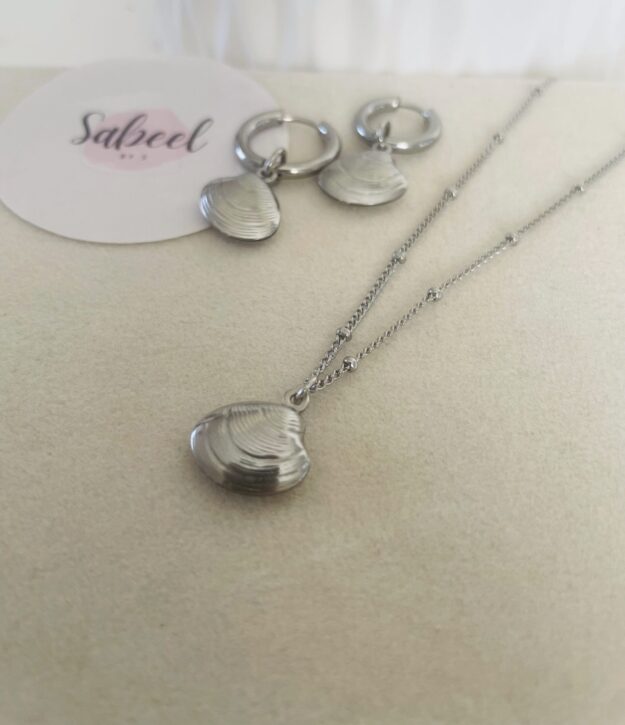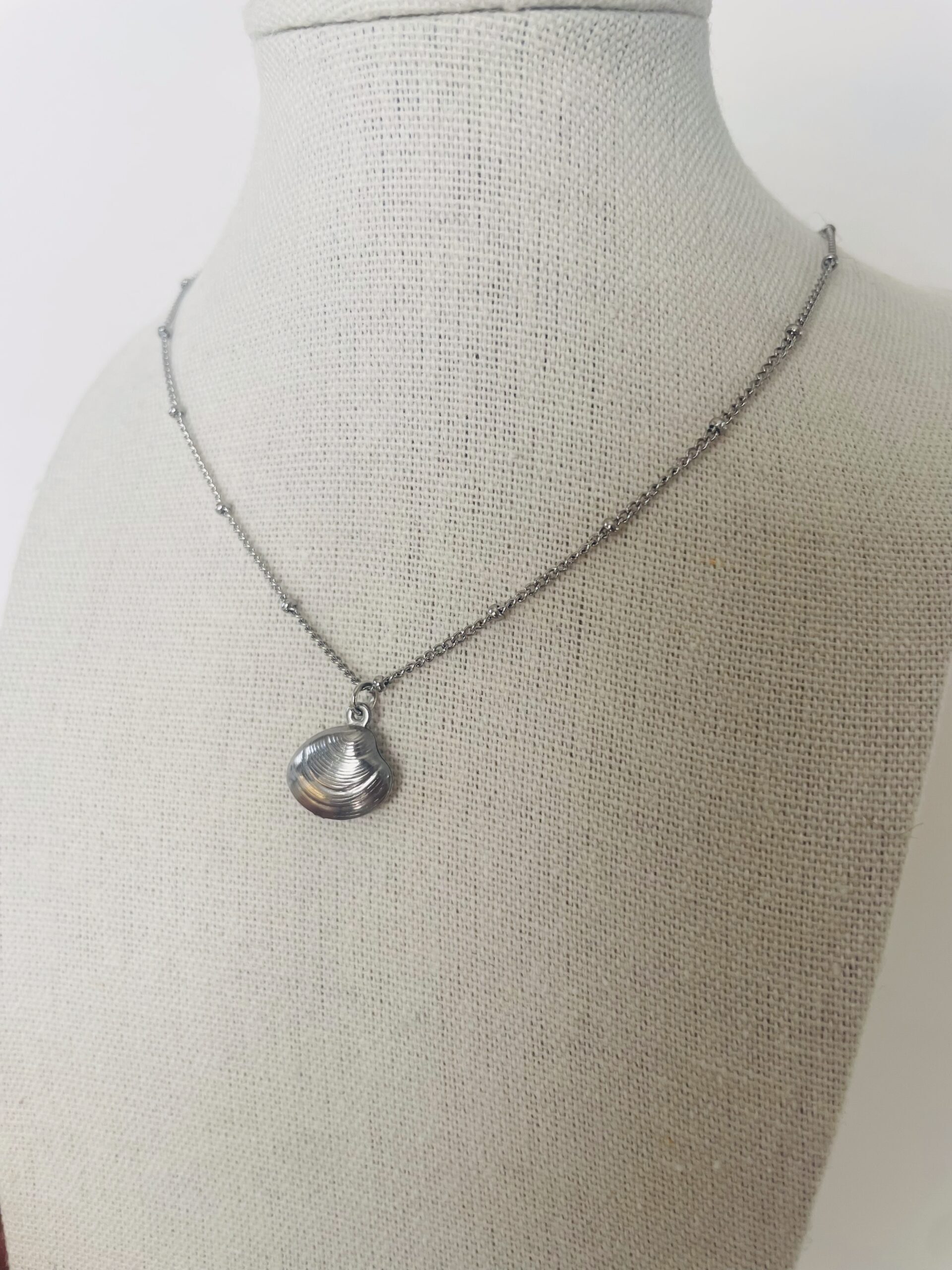 Collier en acier inoxydable perlé avec charm coquillage en acier inoxydable