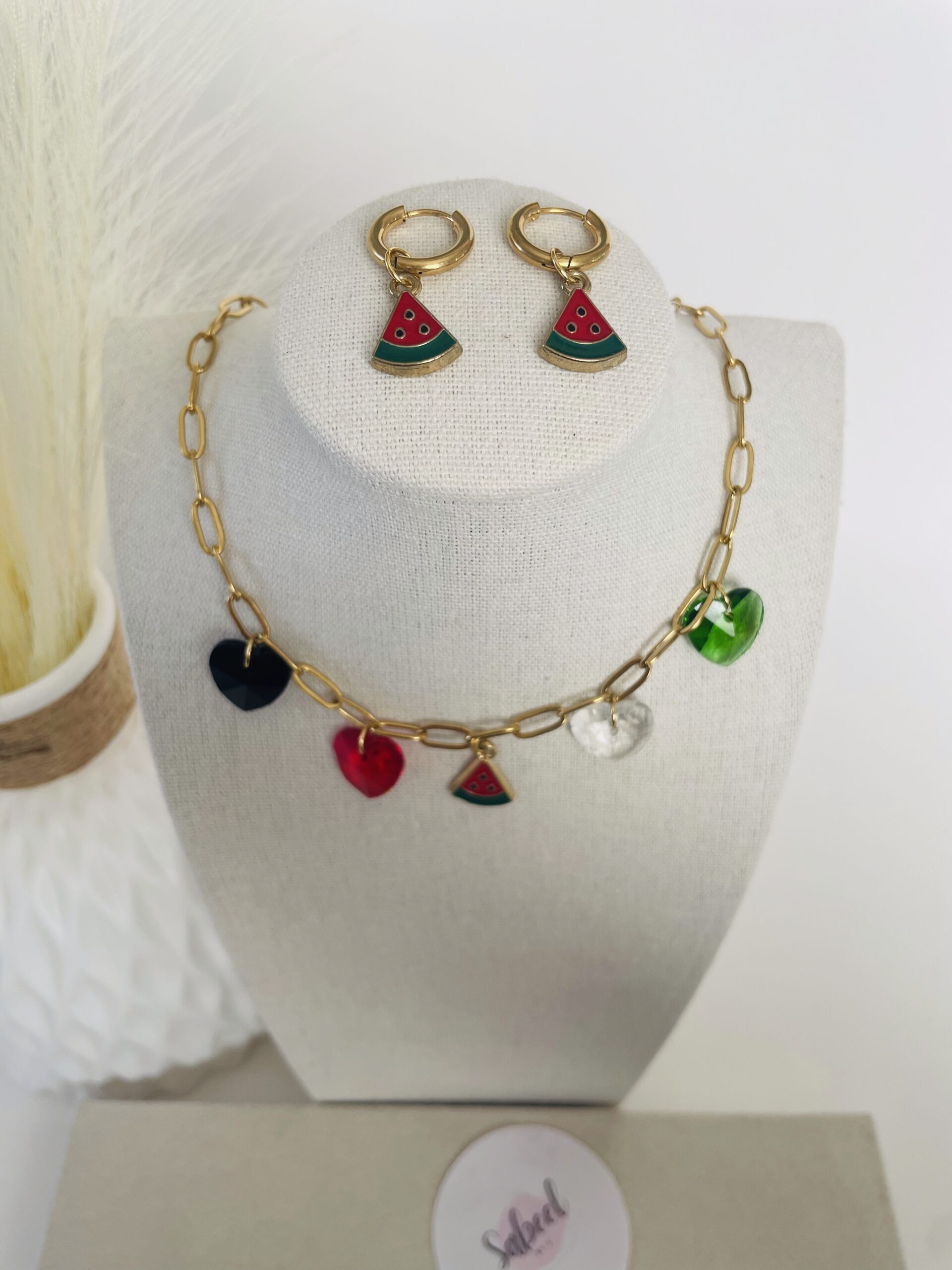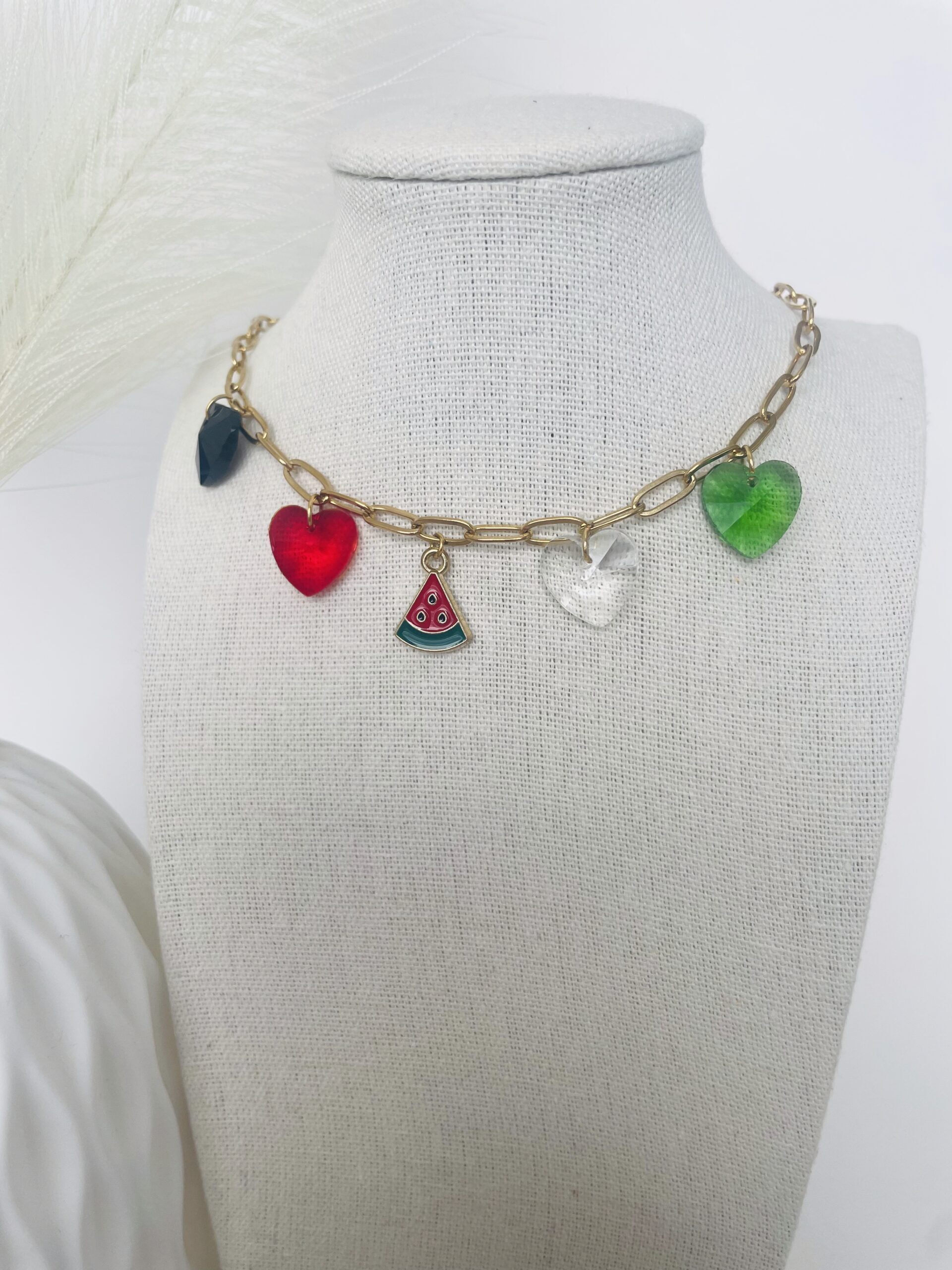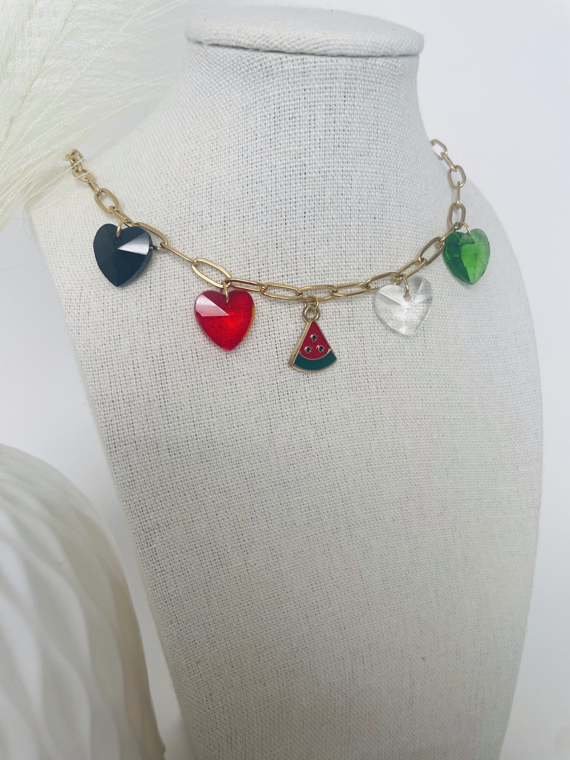Collier watermelon coeur doré