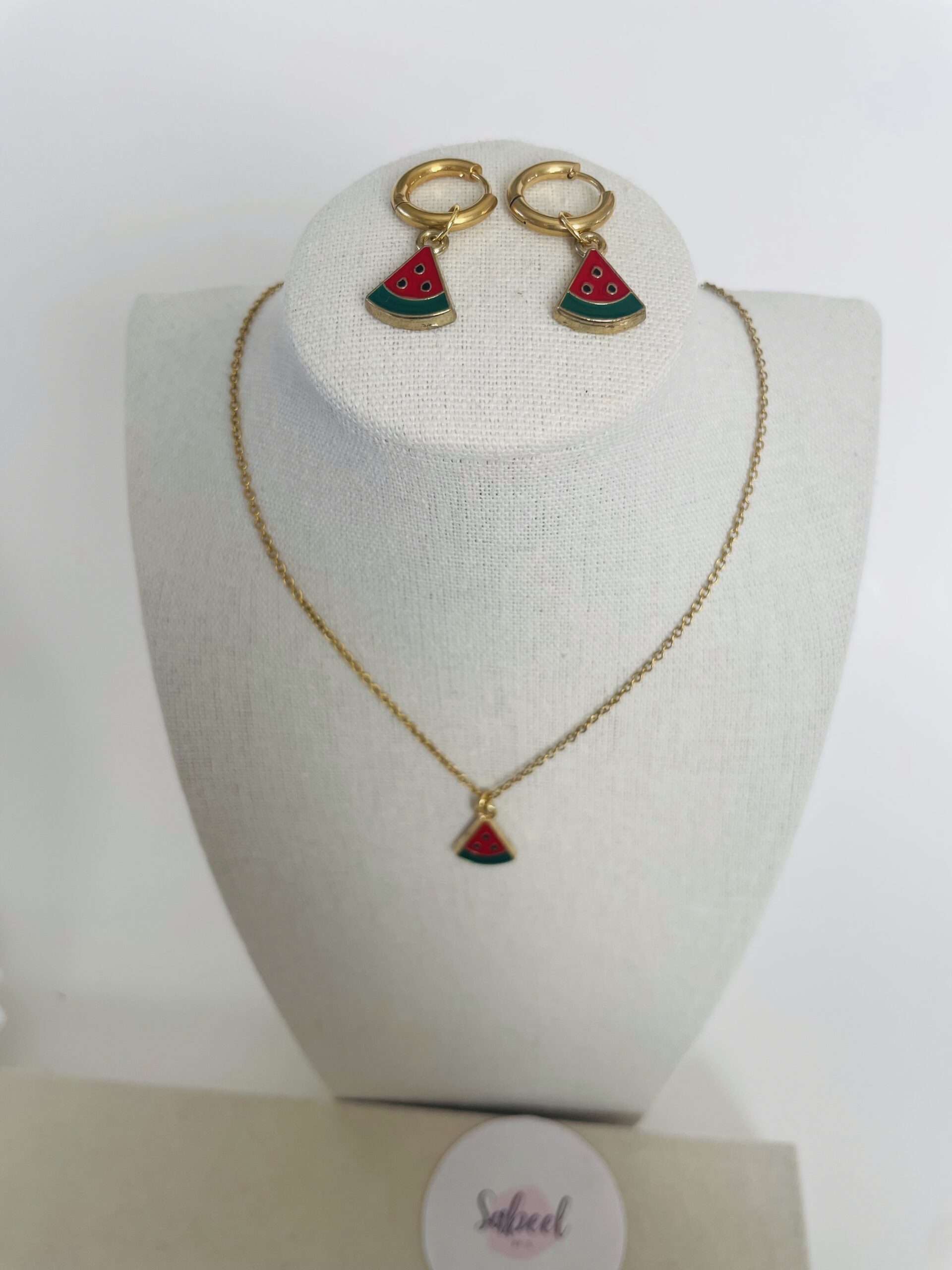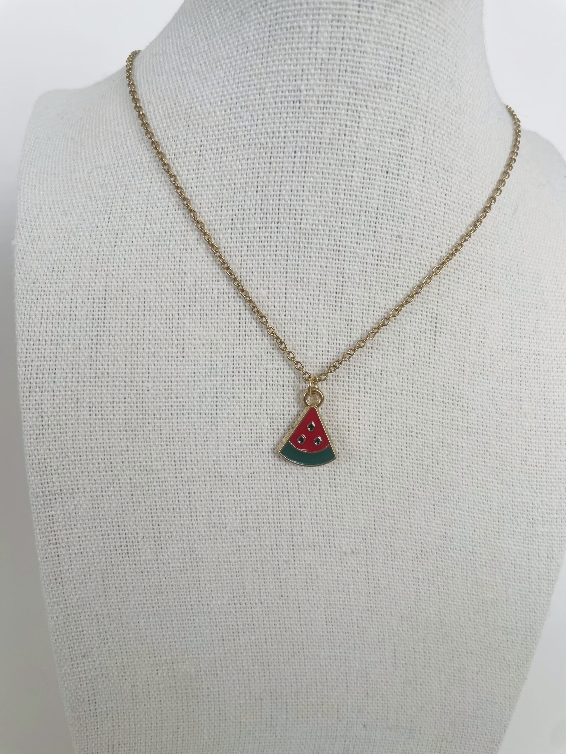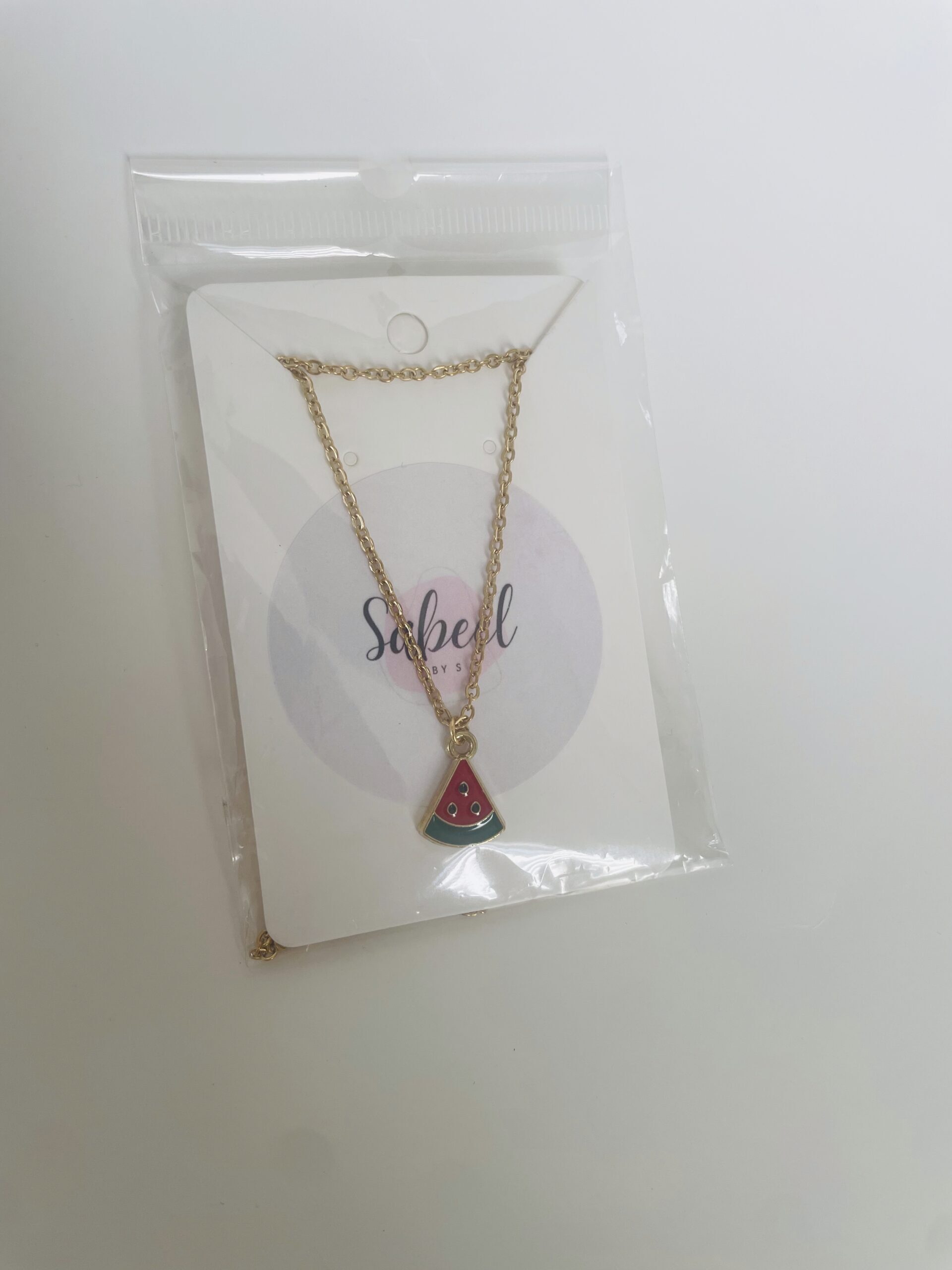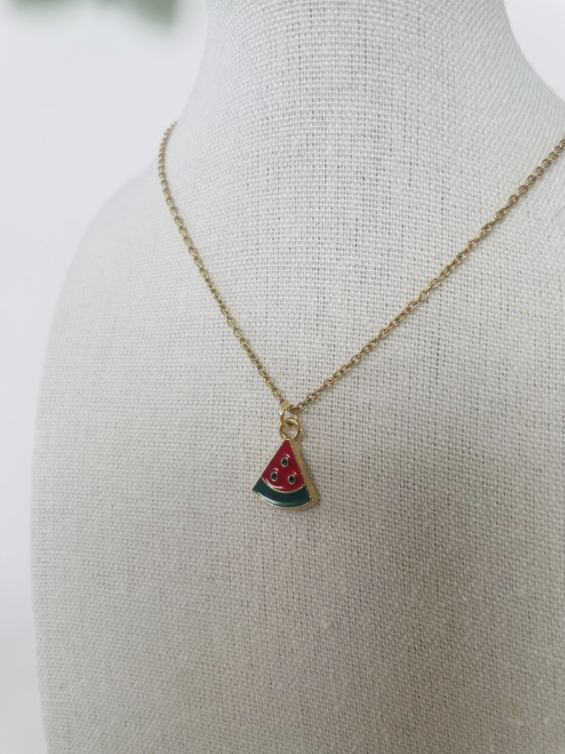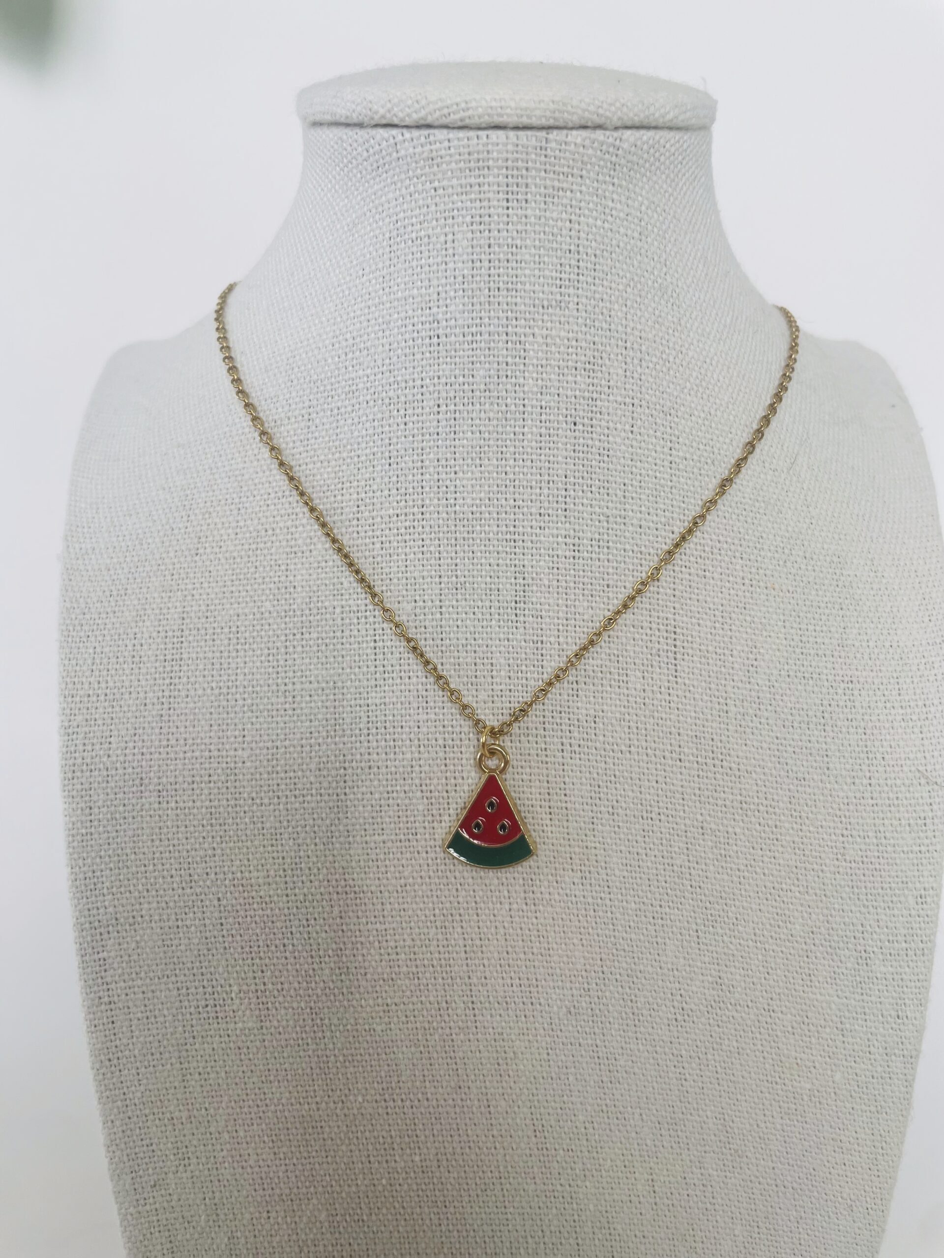 Collier en acier inoxydable doré avec charm watermelon en alliage