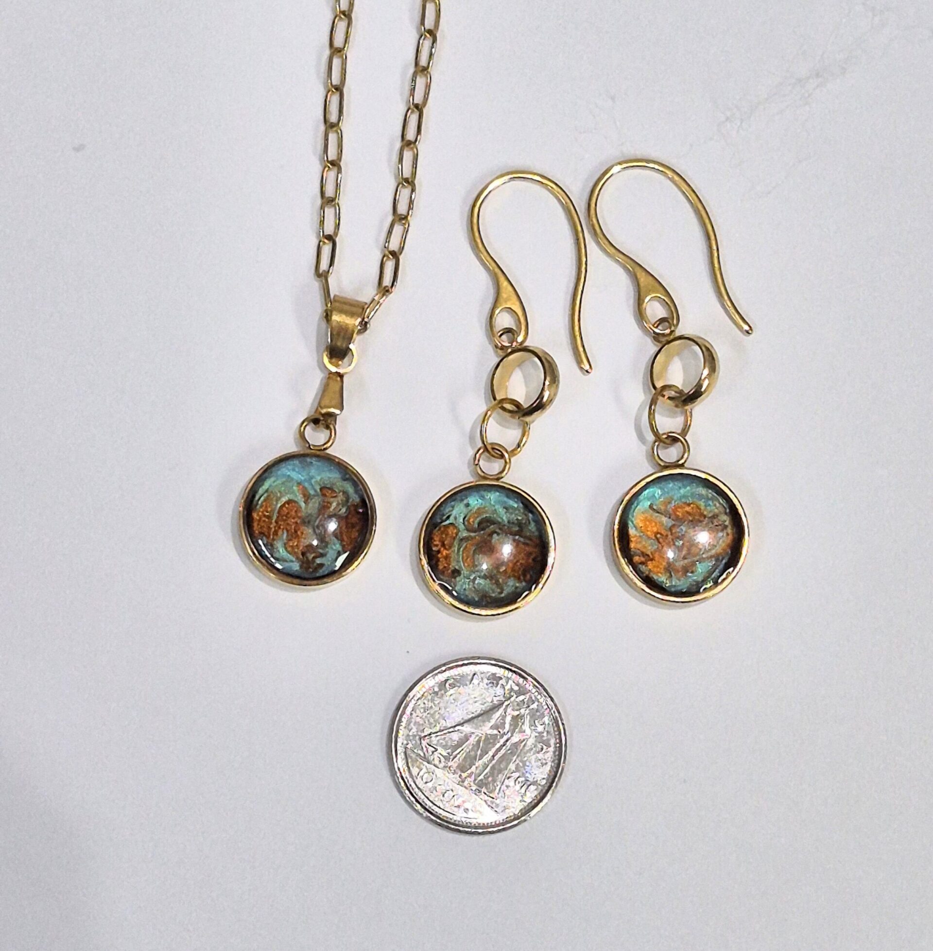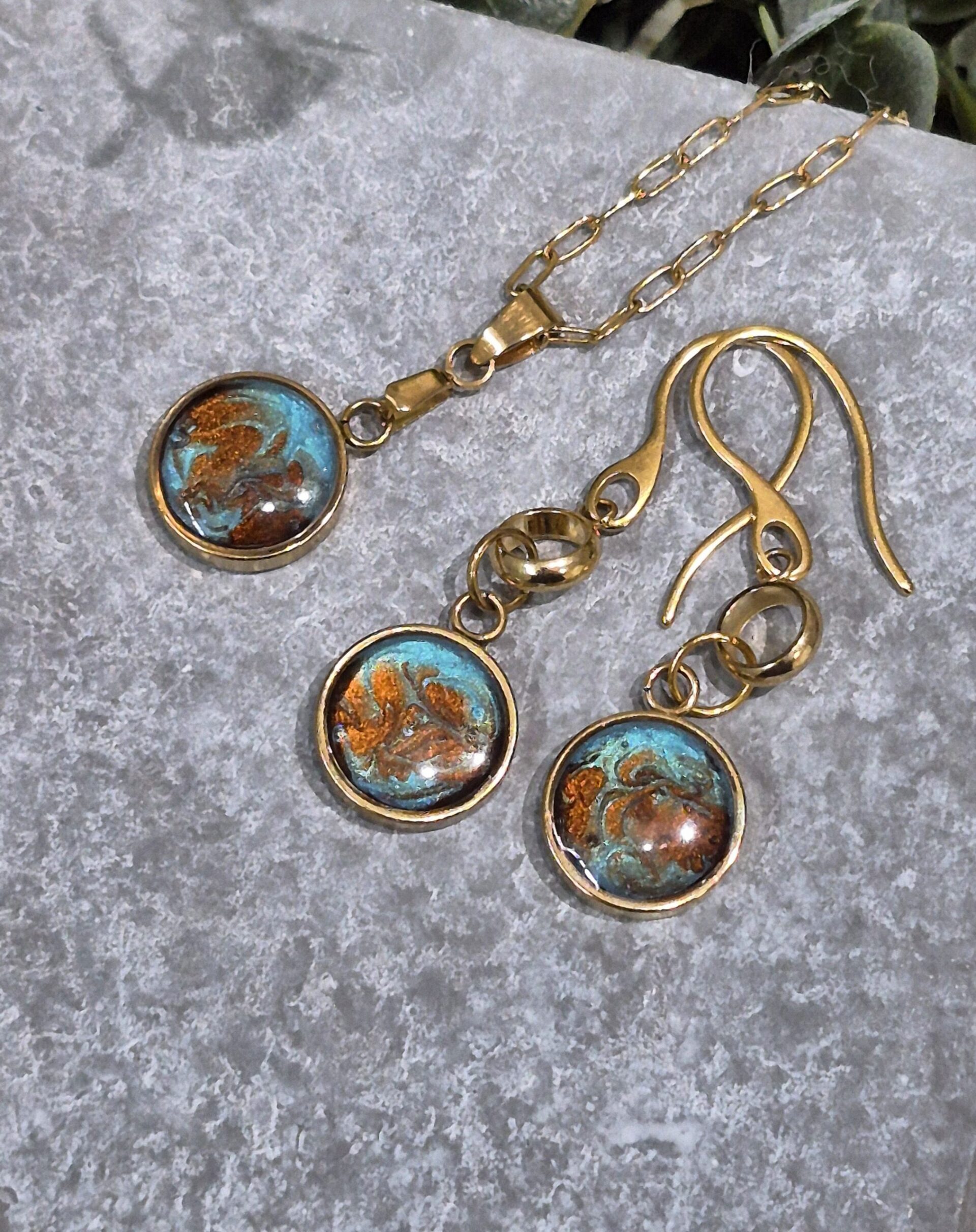 Ensemble doré, collier et boucles d’oreilles, en acier inoxydable hypoallergénique.