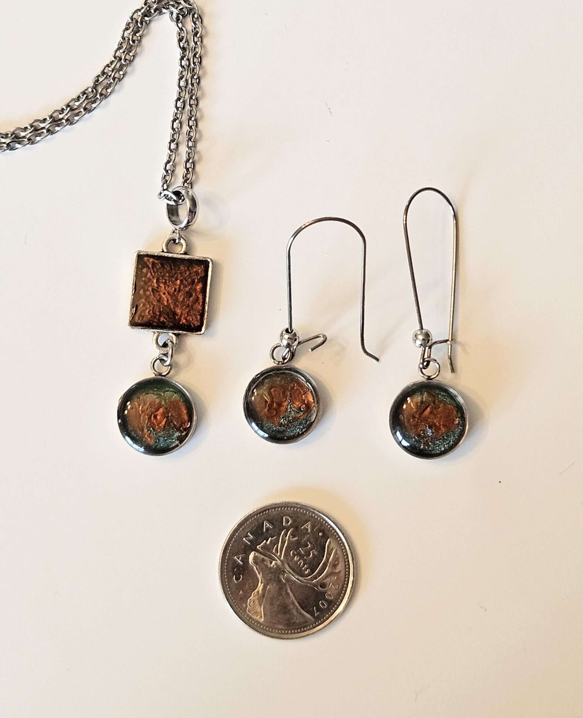 Ensemble en acier inoxydable hypoallergénique, peint à la main avec vernis à ongles et résine époxy,