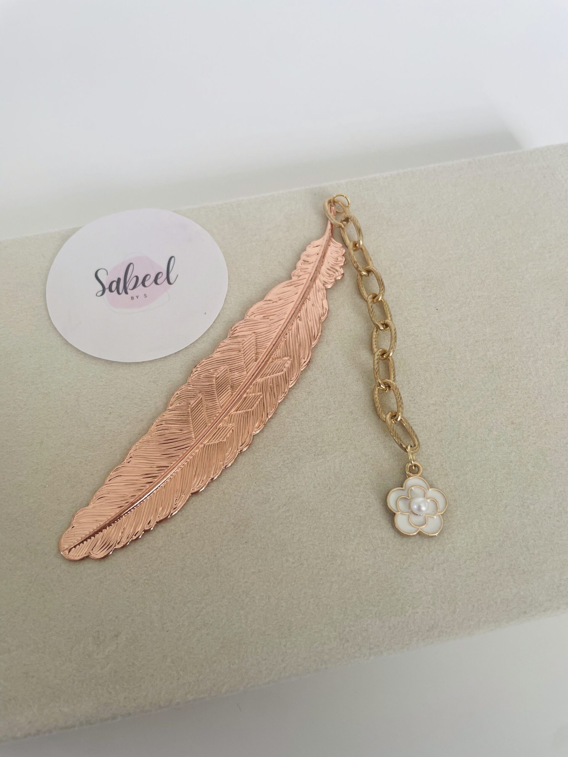 Marque page plume cuivré en métal