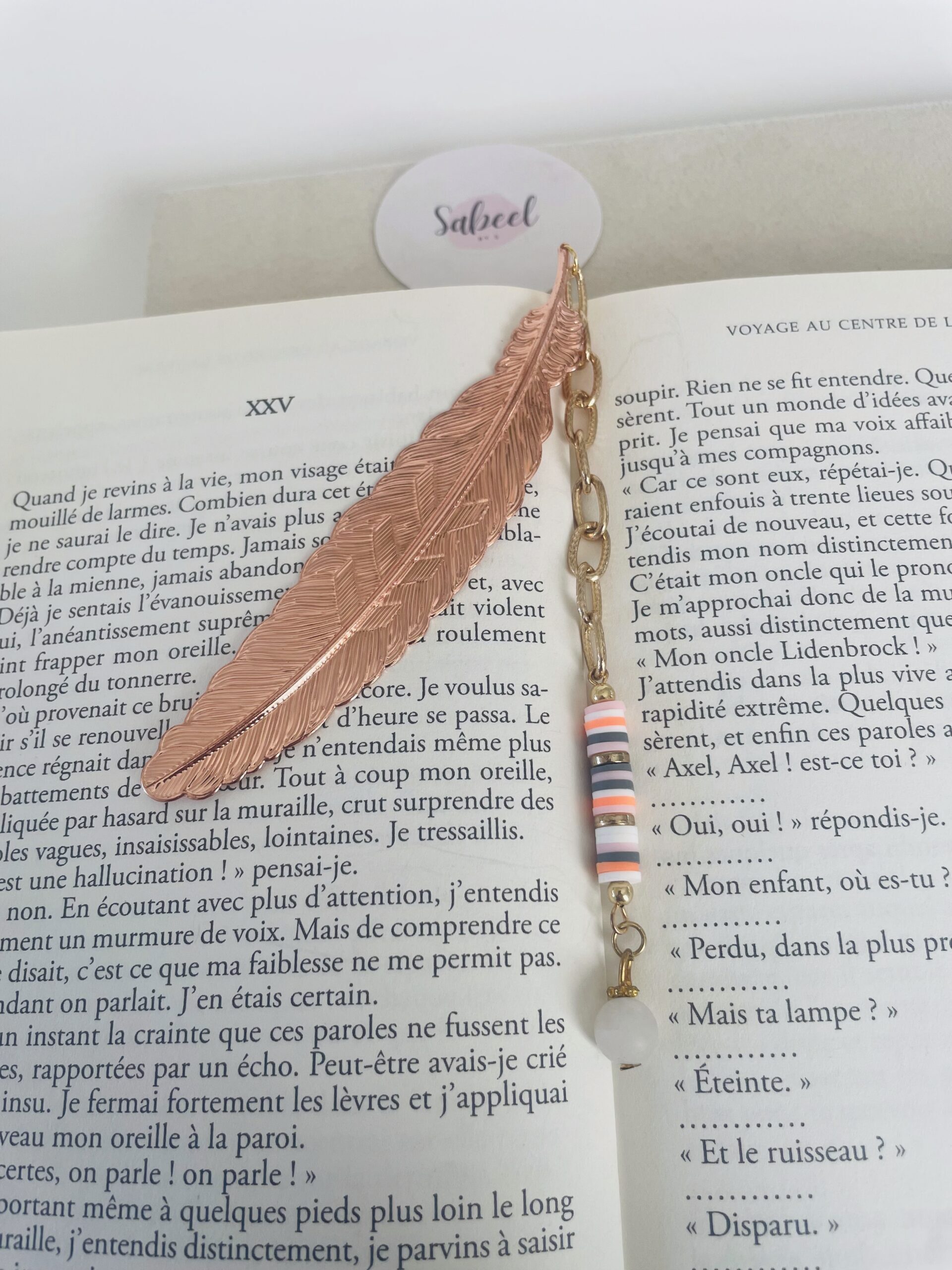 Marque page en métal avec chaine en alliage et résine