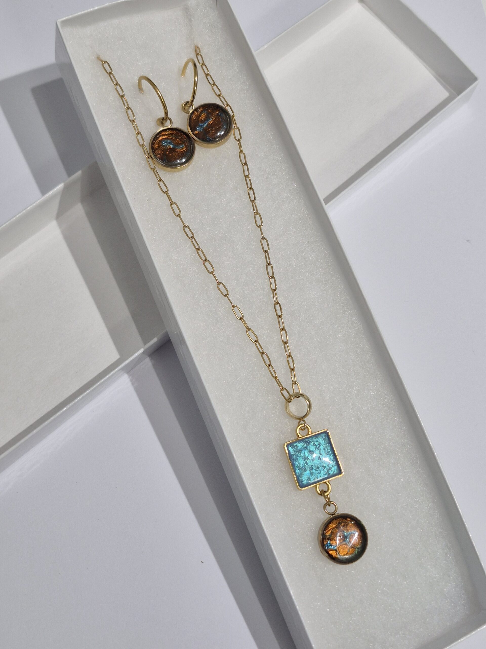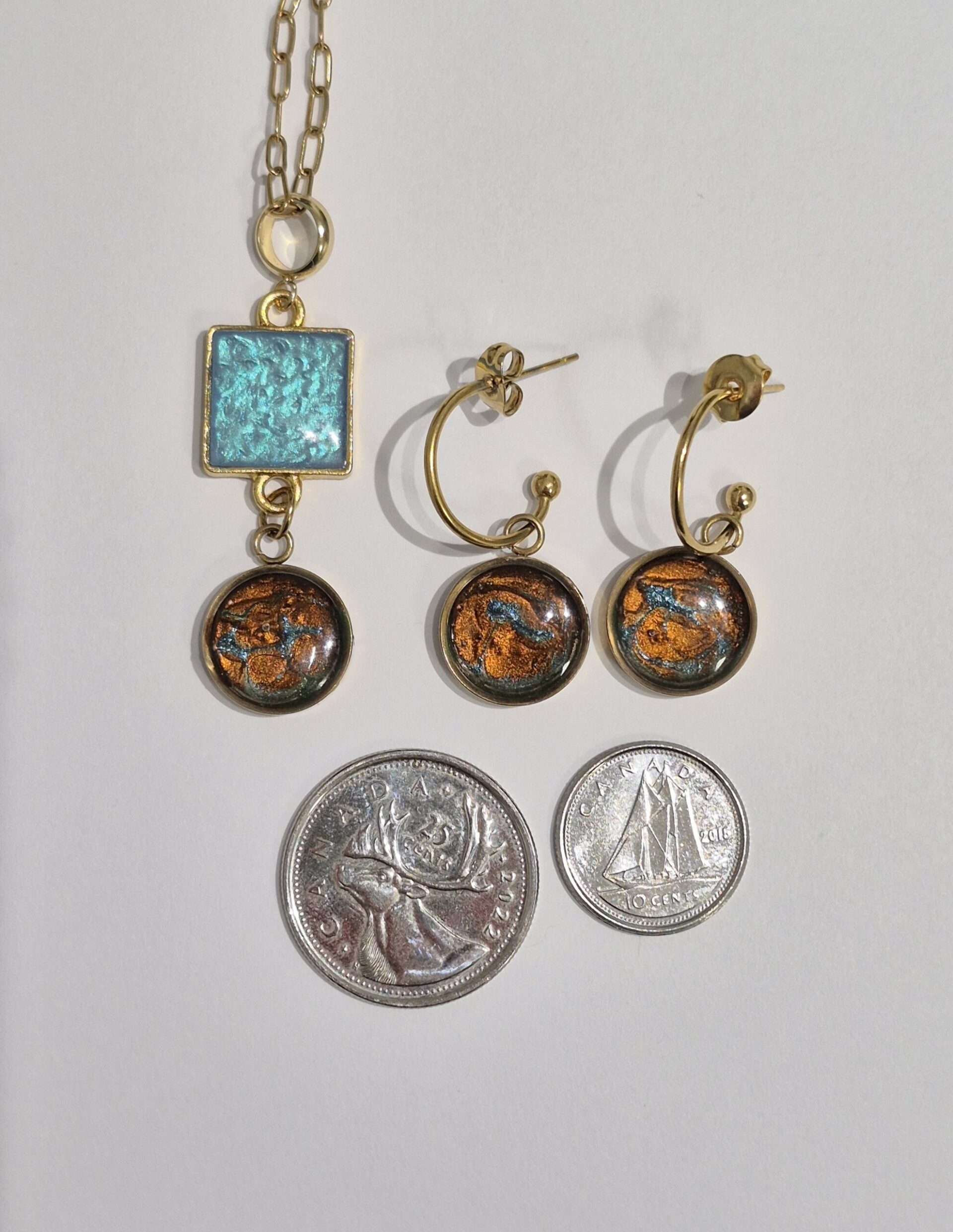 Les pendentifs sont peints avec du vernis à ongles et résine epoxy.