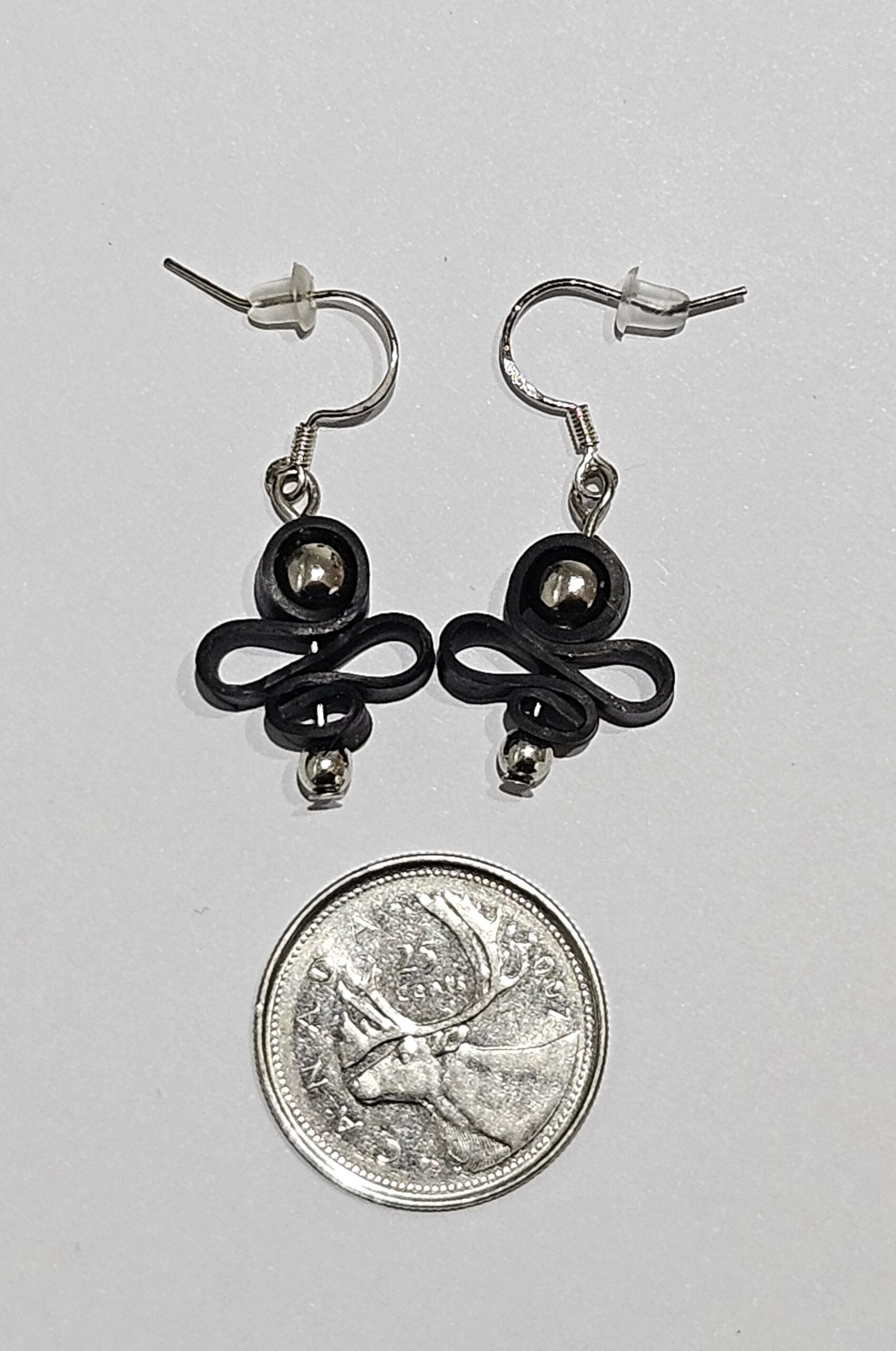 Boucles d’oreilles en chambre à air recyclée de vélo et crochets en argent .925
